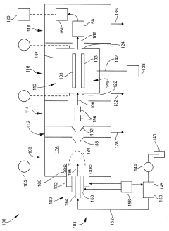 - Alternative plasma sources and instrumental configurations: Alternative plasma sources and specialized instrumental configurations are developed to address polyatomic interferences in elemental analysis. These include mixed-gas plasmas, tandem mass spectrometry arrangements, and hybrid systems that combine different analytical techniques. Such modifications to the conventional ICP-MS setup can alter the ionization environment or provide additional separation mechanisms to minimize the formation or impact of interfering polyatomic species.