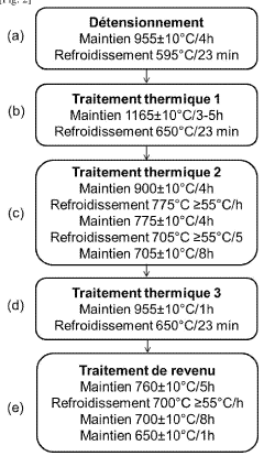 - A nickel-based alloy powder with specific elemental composition and particle size distribution, combined with a laser-based additive manufacturing process and structured heat treatments, to produce a material with enhanced mechanical properties up to 850°C.