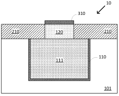 The choice of materials for the resistive switching layer is crucial for RRAM performance. Metal oxides such as HfOx, TaOx, and TiOx are commonly used due to their favorable switching characteristics. Other materials include chalcogenides, perovskites, and organic compounds. The composition, stoichiometry, and defect concentration in these materials significantly influence the resistive switching mechanism, which can be based on oxygen vacancy migration, metallic filament formation, or phase change phenomena.Expand Specific Solutions03 RRAM array architecture and integration