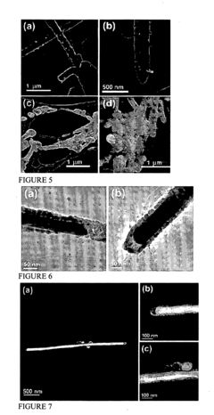 Silver nanowires are used to create transparent conductive films for applications in touch screens, displays, and flexible electronics. These films combine high electrical conductivity with optical transparency. The nanowires form a conductive network while allowing light to pass through the gaps between them. Various methods for depositing and patterning these nanowires on substrates are described, along with techniques to improve their adhesion, stability, and performance.Expand Specific Solutions03 Surface modification and functionalization of silver nanowires