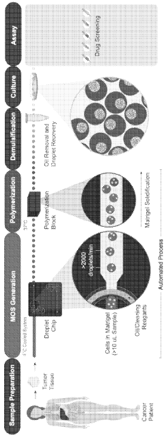 - The use of droplet emulsion microfluidics with temperature control and dead-volume minimization to rapidly generate thousands of MicroOrganoSpheres (MOS) from low-volume patient tissues, which can predict treatment outcomes within 14 days and mimic the original tumor microenvironment, allowing for effective testing of immunotherapies and chemotherapy responses.
