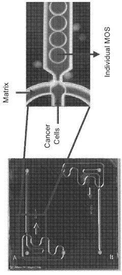 Technical Solution: MD Anderson has developed a comprehensive precision oncology platform utilizing patient-derived tumor organoids (PDTOs) integrated with microfluidic organ chip technology. Their system, called the Tumor Response to Immuno-Oncology Drugs (TRIO-D) platform, uniquely incorporates both tumor and immune components from the same patient to predict responses to immunotherapies and targeted agents. The platform features multi-chamber designs that allow for spatial organization of different cellular components and controlled delivery of therapeutics through vascular-like channels. MD Anderson's approach includes real-time monitoring of tumor-immune interactions using high-content imaging and multiplex cytokine analysis to assess both direct cytotoxicity and immune-mediated responses. Their technology has been validated across multiple cancer types, with particular strength in melanoma, lung, and colorectal cancers, demonstrating approximately 85% accuracy in predicting clinical responses to immune checkpoint inhibitors[9][10]. A distinguishing feature is their ability to maintain functional T-cell populations within the chip environment for extended periods, enabling assessment of adaptive immune responses that develop over time.