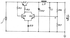 - A Schmitt trigger regulator circuit with two triggering stages and an output voltage detector is used, where the switching-amplifier and second triggering stage control the first triggering stage to initiate and terminate power strokes based on output voltage thresholds, reducing hysteresis and incorporating undervoltage protection to extend battery life.