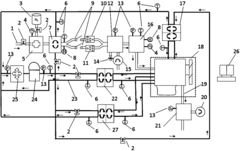 - A test system including an air intake simulation system, an exhaust simulation system and a cooling system is designed. Through the air duct, mixing box, heat exchanger, dryer, humidifier, pressure reducing box, pressure stabilizing box and cooling system, the simulation The climate conditions are low pressure, low oxygen content, low temperature, high/low humidity, and the fuel and body temperature are controlled through heat exchange technology to ensure that the state of the power machinery during the test is consistent with the actual extreme climate.