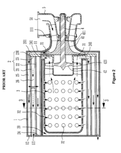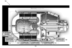 Technical Solution: General Electric (GE) has developed extensive comparative studies between V10 engines and gas turbines, focusing primarily on their aviation and power generation applications. GE's research has led to the development of advanced gas turbine technologies like the HA-series turbines that achieve over 64% combined cycle efficiency[1]. Their technical approach involves aerodynamic optimization using computational fluid dynamics (CFD) modeling to enhance turbine blade designs, resulting in improved thermal efficiency. GE has implemented advanced cooling systems and thermal barrier coatings that allow their gas turbines to operate at higher temperatures (approximately 1,600°C) than conventional V10 engines (typically below 900°C)[2]. Additionally, GE has pioneered additive manufacturing techniques for gas turbine components, enabling complex geometries that would be impossible with traditional manufacturing methods, resulting in weight reduction of up to 30% for certain components while maintaining structural integrity[3].