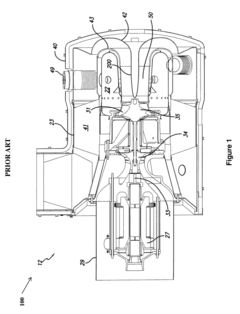 Technical Solution: Rolls-Royce has conducted extensive comparative research between V10 engines and gas turbines, particularly focusing on aerospace and marine applications. Their technical approach centers on the Trent series gas turbines which utilize a three-shaft architecture that allows each compressor and turbine section to operate at optimal speeds, significantly improving efficiency across various operating conditions[1]. For marine applications, Rolls-Royce has developed the MT30 marine gas turbine (derived from the Trent 800 aero engine) that delivers approximately 40MW of power while weighing significantly less than equivalent diesel V10 configurations. Their comparative studies have demonstrated that their gas turbines achieve power densities approximately 4 times higher than advanced V10 engines[2]. Rolls-Royce has implemented advanced ceramic matrix composite materials in their turbine designs that can withstand temperatures up to 1,650°C, substantially higher than the metallurgical limits of conventional V10 engines, resulting in thermal efficiency improvements of approximately 5-7% compared to previous generation turbines[3].