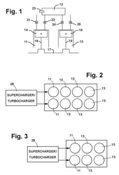 Sophisticated electronic control systems are essential for maximizing power density in modern V10 and turbocharged engines. These systems precisely manage fuel injection timing, ignition timing, boost pressure, and valve timing to optimize combustion efficiency. Advanced engine control units (ECUs) utilize real-time sensor data to adjust operating parameters based on driving conditions, ensuring maximum power output while maintaining reliability and emissions compliance. Electronic boost control specifically helps prevent turbocharger overboost conditions while maximizing power delivery.Expand Specific Solutions05 Materials and Manufacturing Techniques for High-Performance Engines