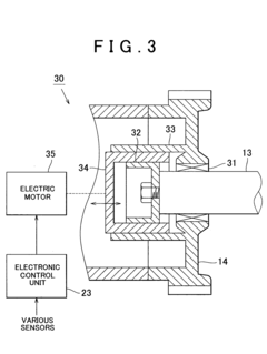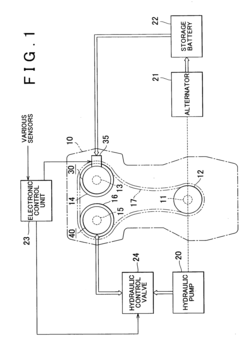 Technical Solution: Toyota has pioneered advanced valve timing adjustment technologies through its VVT-i (Variable Valve Timing with intelligence) system for V6 engines. Their latest implementation includes Dual VVT-i which controls timing on both intake and exhaust camshafts independently. Toyota's system utilizes hydraulic actuators that adjust camshaft position relative to the crankshaft based on engine load, speed, and temperature. The system can advance or retard valve timing by up to 60 degrees of crankshaft rotation. Toyota has further enhanced this with VVT-iE which employs electric motors instead of oil pressure for more precise control, especially during cold starts when oil pressure is low. This technology has been implemented across their V6 lineup including the popular 3.5L V6 engines, delivering significant improvements in both performance and efficiency.