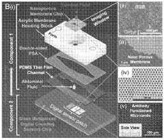 Microfluidic technologies play a crucial role in organ-on-chip validation by enabling precise control of fluid flow, nutrient delivery, and waste removal that mimics physiological conditions. These technologies incorporate sensors and monitoring systems to continuously assess cellular responses and organ functionality in real-time. Advanced microfluidic platforms allow for the integration of multiple cell types and tissues, creating more complex and physiologically relevant models for validation studies. The controlled microenvironment helps ensure reproducibility and reliability of validation results.Expand Specific Solutions03 Integration of sensing technologies for real-time monitoring