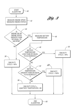 - A method that involves monitoring the vehicle speed and increasing the movement of noise-producing components, such as cooling fans, by adjusting their duty cycle based on predetermined speed thresholds, with the fan duty cycle set to a minimum at zero speed and linearly increasing as the speed increases, and optionally adjusting based on battery temperature.
