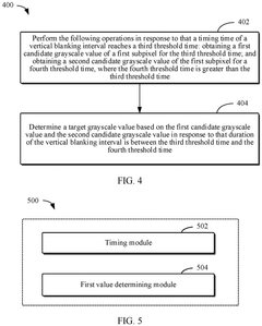Power optimization methods for VRR displays balance image quality with energy efficiency. These techniques dynamically adjust power consumption based on content requirements and refresh rate changes, preventing distortion issues that can arise from power fluctuations. By implementing intelligent power distribution systems, displays can maintain consistent image quality across varying refresh rates while optimizing battery life in portable devices or reducing energy consumption in stationary displays.Expand Specific Solutions05 Content-adaptive VRR processing