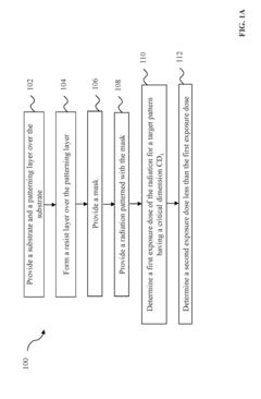 - A two-step approach using a reduced EUV exposure dose followed by negative-tone development (NTD) and a shrinking process to achieve target critical dimensions while reducing LER and LWR, without increasing radiation power or resist sensitivity, utilizing existing EUV equipment and resists.