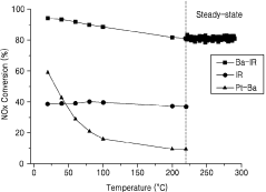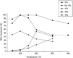 - A catalyst comprising ruthenium and iridium supported on a support, with additional barium, potassium, or cerium, capable of utilizing carbon monoxide in exhaust gas as a reducing agent to remove NOx at various temperatures without the need for a separate reducing agent.