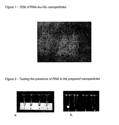 - mRNA nanoparticle stabilization techniques: Various stabilization techniques are employed to enhance the stability and efficacy of mRNA nanoparticles. These include chemical modifications of the mRNA structure (such as pseudouridine substitutions), lyophilization processes, and the incorporation of stabilizing excipients. Advanced formulation approaches may involve pH-responsive elements, temperature-sensitive components, or cross-linking strategies to protect the mRNA cargo from degradation and improve shelf-life while maintaining biological activity upon delivery.