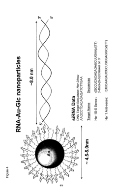 - Nanoparticles with cores made of metal and/or semiconductor atoms covalently linked to RNA ligands, such as siRNA and miRNA, which are designed to mimic short interfering RNA sequences, enabling targeted gene silencing, mRNA degradation, and imaging, with optional additional ligands for enhanced targeting and stability.