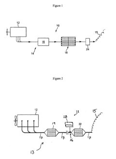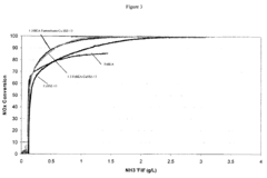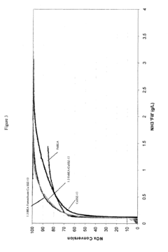 Technical Solution: BASF has developed advanced DeNOx catalysts utilizing selective catalytic reduction (SCR) technology for nitrogen oxide reduction. Their catalysts incorporate metal-exchanged zeolites (particularly Cu-SSZ-13 and Fe-ZSM-5) that operate across a wide temperature window (150-550°C). BASF's regulatory compliance strategy includes comprehensive lifecycle assessment protocols to address environmental regulations like Euro 7 and China 6 standards. They've invested in catalyst formulations that minimize precious metal content while maintaining performance, addressing both cost and resource scarcity concerns. Their dual-layer catalyst designs combine different active phases to meet varying operational conditions while complying with increasingly stringent NOx emission limits across global markets.