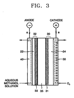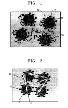 Technical Solution: Helmholtz-Zentrum Berlin has developed innovative catalyst systems for proton batteries focusing on ruthenium-based catalysts that facilitate efficient hydrogen storage and release. Their approach involves nanostructured catalyst materials with high surface area that enhance proton transfer kinetics at the electrode-electrolyte interface. The research team has demonstrated that their catalysts can reduce activation energy barriers by approximately 30% compared to conventional materials, enabling faster charging and discharging cycles. Their technology incorporates precisely controlled catalyst loading techniques to optimize the balance between catalytic activity and material costs. Additionally, they've pioneered methods for catalyst stabilization that prevent degradation during repeated cycling, extending the operational lifetime of proton battery systems by up to 40% in laboratory tests.