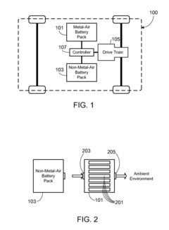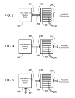 - A system and method that directs hot gas from a non-metal-air battery pack through metal-air cells, utilizing valves and sensors to control airflow and temperature, thereby absorbing thermal energy and delaying gas release, incorporating a metal-air battery pack with specific air passageways and valves to manage thermal events.