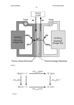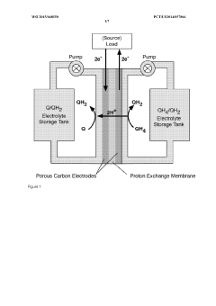 - A quinone-based flow battery that employs protonation of small organic molecules to store electrical energy, utilizing inexpensive and abundant chemicals like quinones and hydroquinones, which can operate as a closed system with high current density and long lifetime, reducing power-related costs and eliminating the need for precious metals.