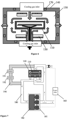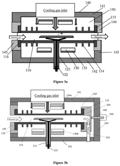 Technical Solution: Veeco Instruments has pioneered autoclave-enhanced MOCVD (Metal Organic Chemical Vapor Deposition) technology for uniform thin film deposition. Their proprietary TurboDisc® technology incorporates autoclave principles by utilizing a specialized high-pressure reaction chamber that maintains precise laminar gas flow dynamics[2]. This system operates at elevated pressures (up to 20 atmospheres) and carefully controlled temperatures to promote uniform precursor decomposition and film growth. Veeco's approach addresses the fundamental challenge of gas-phase reactions by creating a pressure-stabilized environment that minimizes turbulence and optimizes precursor delivery to the substrate surface[4]. The company has further enhanced this technology with their Uniform FlowFlange® design, which ensures consistent gas distribution across the entire deposition area. Their systems incorporate real-time monitoring and automated pressure regulation that dynamically adjusts process conditions to maintain optimal film growth parameters[7]. This technology has proven particularly effective for compound semiconductor materials where stoichiometric precision is critical for device performance.