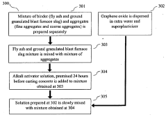 - A geopolymer concrete composition using waste foundry sand, recycled concrete aggregates, and graphene oxide as a carbon-based nanomaterial, which reduces cement usage and enhances strength and durability, while lowering carbon emissions and resource extraction demands.