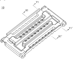 - A double shielding structure with surface contact between shield wall members effectively blocks EMI and reduces the connector's width direction size, utilizing a hermaphroditic connector design with specific shield wall configurations and pin arrangements for stable and reliable signal transmission.