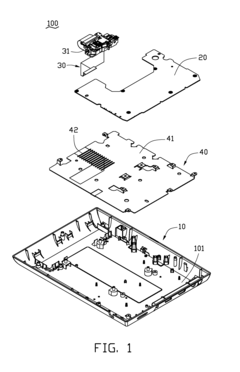 Technical Solution: IBM has developed sophisticated EMI shielding integration technologies focused on high-performance computing environments and data center applications. Their approach combines traditional Faraday cage principles with advanced materials science to create multi-layered shielding solutions that address both radiated and conducted emissions. IBM's technology utilizes specialized conductive polymers and metal-infused composites that can be precisely applied to specific components or entire systems. Their patented "Selective Shielding" methodology analyzes electromagnetic field patterns within complex systems to identify critical interference pathways and applies targeted shielding only where needed, reducing weight and material costs while maintaining effectiveness[1]. IBM has also pioneered advanced computational modeling techniques that predict EMI interactions before physical prototyping, allowing for optimization of shield designs based on specific frequency ranges and interference patterns. Their latest generation of shielding materials incorporates nano-scale metal particles (typically copper, silver, and nickel) embedded in polymer matrices that can be applied through standard manufacturing processes like injection molding or 3D printing, achieving shielding effectiveness of 60-85dB across frequencies from 1GHz to 40GHz while maintaining thermal management capabilities[2].