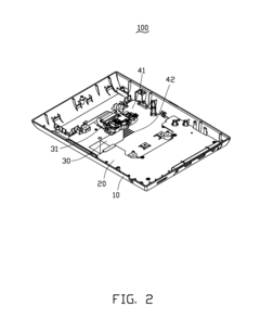 Multilayer structures can be designed to enhance EMI shielding effectiveness across different frequency ranges. These structures typically combine layers with varying electromagnetic properties, such as conductive layers for reflection and absorptive layers for energy dissipation. By strategically arranging multiple layers with different electromagnetic characteristics, these structures can provide comprehensive protection against a wide spectrum of electromagnetic interference while maintaining compatibility with surrounding electronic systems.Expand Specific Solutions03 Housing and enclosure designs for EMI protection