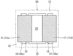 - 01 Flexible substrate materials for display applicationsVarious materials are used as flexible substrates in display applications to enhance semiconductor performance while maintaining flexibility. These include polymer films, thin glass, and composite materials that can withstand bending stress while providing stable support for semiconductor components. These substrates are engineered to maintain electrical performance during flexing and to provide appropriate thermal management for semiconductor devices.- Flexible substrate materials for display applications: Various materials can be used as flexible substrates for display applications to enhance semiconductor performance. These materials include polymers, thin glass, and composite materials that offer flexibility while maintaining structural integrity. The choice of substrate material significantly impacts the overall performance of the display, including its flexibility, durability, and electronic properties. These materials can be engineered to withstand repeated bending and folding while preserving the semiconductor functionality.
