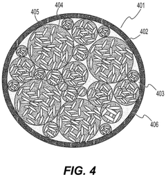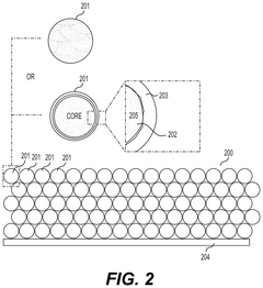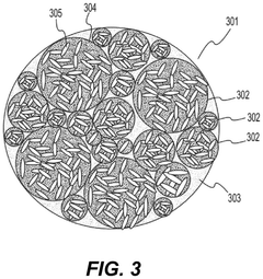 Composite structures combining fluoride materials with conductive additives can overcome the inherent low conductivity of fluoride compounds. These composites typically incorporate carbon-based materials, conductive polymers, or metal nanoparticles to create electron transport pathways. The resulting nanostructured or hierarchical architectures enhance both ionic and electronic conductivity, leading to improved rate capability and cycling stability. Such composite designs enable practical utilization of fluoride cathodes' high theoretical energy density while maintaining acceptable power performance.Expand Specific Solutions04 Electrolyte compatibility with fluoride cathodes