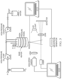 Technical Solution: ETH Zurich has developed a revolutionary approach to high-precision spray pyrolysis called Pulsed Aerosol Synthesis (PAS) that combines controlled droplet generation with precisely timed thermal processing. Their system utilizes acoustic excitation to produce monodisperse precursor droplets with size variation below 5%, while incorporating synchronized thermal pulses that enable unprecedented control over nucleation and growth kinetics. The technology features a proprietary reactor design with laminar flow characteristics that minimize turbulence-induced variability, maintaining consistent residence times within ±50ms. ETH researchers have implemented advanced in-situ monitoring using laser-induced breakdown spectroscopy that provides real-time compositional analysis during particle formation. Their method has demonstrated particular success in creating complex multi-component nanomaterials with precisely controlled dopant distributions, achieving compositional accuracy within 0.5 atomic percent across production batches. The system has been validated for producing high-performance catalytic materials showing activity enhancements of 25-35% compared to conventionally synthesized alternatives.