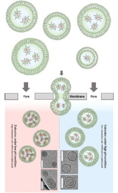 - A method for producing lipid nanoparticles by combining ionizable mRNA with cationic lipids under acidic conditions, forming liposomes, and rearranging them through a membrane with micropores to reduce size and improve uniformity, using existing equipment.