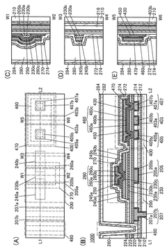 - Energy-efficient display technologies using oxide semiconductors: Oxide semiconductor materials are increasingly used in display technologies to reduce power consumption. These materials enable the development of energy-efficient backplanes for LCD and OLED displays, allowing for lower refresh rates while maintaining image quality. The implementation of oxide semiconductor-based circuits in displays results in reduced power requirements for portable devices and larger screens, extending battery life and decreasing overall energy consumption.