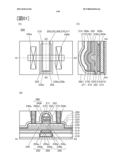Technical Solution: Semiconductor Energy Laboratory (SEL) is a pioneer in oxide semiconductor technology, particularly in the development of CAAC-IGZO (C-Axis Aligned Crystalline Indium Gallium Zinc Oxide). Unlike conventional amorphous oxide semiconductors, SEL's CAAC-IGZO features a unique crystalline structure that provides superior stability and reliability while maintaining excellent electron mobility (typically 10-15 cm²/Vs). This crystalline structure significantly reduces oxygen vacancy fluctuations, which are the primary cause of threshold voltage shifts and reliability issues in traditional oxide semiconductors. SEL's technology enables transistors with extremely low off-state current (less than 10^-24 A/μm), approximately 10 orders of magnitude lower than silicon-based transistors. This ultra-low leakage current translates directly to energy efficiency, as devices can maintain stored data for extended periods without refresh operations. SEL has demonstrated memory devices that can retain information for over 10 years without power, and display backplanes that consume less than half the power of conventional technologies while offering higher resolution and faster response times.