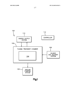 Plasma treatment plays a crucial role in semiconductor processing and fabrication. It is used for etching patterns, removing photoresist, depositing thin films, and cleaning wafer surfaces. Advanced plasma techniques enable the creation of high-aspect-ratio features and precise material removal at nanometer scales. These processes are essential for manufacturing integrated circuits, microelectromechanical systems (MEMS), and other semiconductor devices. Plasma-based fabrication techniques continue to evolve to meet the demands of increasingly complex semiconductor architectures.Expand Specific Solutions05 Atmospheric and low-pressure plasma technologies