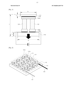 Technical Solution: Murata has developed advanced miniaturized thermoelectric modules (TEMs) utilizing bismuth telluride-based semiconductor materials with optimized doping profiles. Their proprietary micro-fabrication techniques enable the creation of ultra-thin thermoelectric elements (50-100μm) arranged in high-density arrays. These modules incorporate specialized thermal interface materials to maximize heat transfer efficiency across miniaturized junctions. Murata's design employs a flexible substrate architecture that allows for conformal application to irregular heat sources, particularly valuable for wearable applications. Their modules achieve power densities of 10-30μW/cm² at temperature differentials as low as 2-5°C, making them suitable for body heat harvesting applications. The company has also developed proprietary low-resistance electrical interconnects that minimize parasitic losses in these small-scale devices.