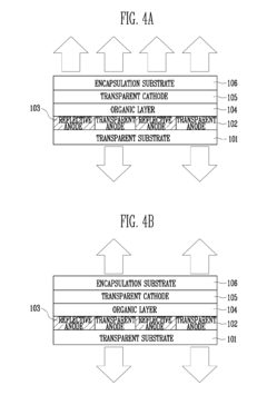 Technical Solution: Samsung Display has pioneered advanced transparent conductive film (TCF) technologies for next-generation OLED displays, focusing on metal mesh and silver nanowire solutions. Their proprietary metal mesh technology creates ultra-fine conductive patterns with line widths below 3μm, achieving transparency exceeding 90% while maintaining sheet resistance under 10 ohms/square. This enables the development of flexible and foldable OLED panels with enhanced touch sensitivity and reduced response time. Samsung has also developed a unique silver nanowire embedding process that integrates nanowires directly into polymer substrates, improving durability while maintaining optical clarity. Their TCF solutions incorporate multi-layer structures with anti-reflection and anti-fingerprint coatings to enhance outdoor visibility and user experience. These technologies have been crucial for Samsung's implementation of under-display cameras and sensors in their latest OLED products.