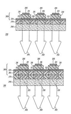 Hybrid display architectures integrate elements from both WOLED and LCD technologies to maximize sunlight readability. These designs may incorporate dual-mode operation that switches between transmissive and emissive display modes based on ambient conditions. Some implementations use OLED elements for high contrast and color accuracy while leveraging LCD components for brightness and power efficiency. This hybrid approach addresses the limitations of each technology when used independently in bright outdoor environments.Expand Specific Solutions05 Structural and material innovations for reducing reflections