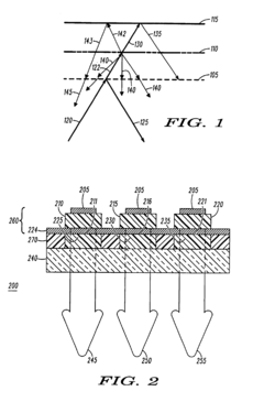 - Anti-reflection and anti-glare technologies for display surfaces: Surface treatments and coatings can significantly improve the sunlight readability of both WOLED and LCD displays. Anti-reflection coatings reduce the amount of ambient light reflected from the display surface, while anti-glare treatments diffuse reflected light to minimize interference with displayed content. Additional technologies include polarization filters and specialized glass compositions that maintain visibility under varying lighting conditions.