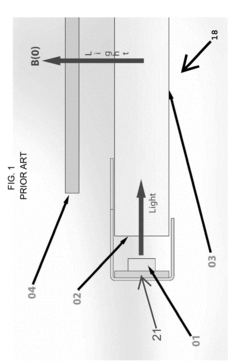 Advanced structural and material innovations help reduce reflections that impair sunlight readability. These include specialized polarizer configurations, nano-textured surfaces that diffuse reflected light, and optical bonding techniques that eliminate internal reflective interfaces. Some displays incorporate photochromic or electrochromic layers that dynamically adjust transparency based on ambient light intensity. These innovations significantly improve the contrast ratio and readability of both WOLED and LCD displays in bright sunlight conditions.Expand Specific Solutions