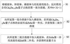 - Using CdXZn1-XSe quantum dot core, by forming two shells of ZnSe and ZnS on its surface, it forms an alloy structure with gradient changes in composition, improving charge transport and composite luminescence performance, and combining short-chain and long-chain organic ligands for surface modification and optimization Structure and ligand exchange of quantum dots to improve device performance.